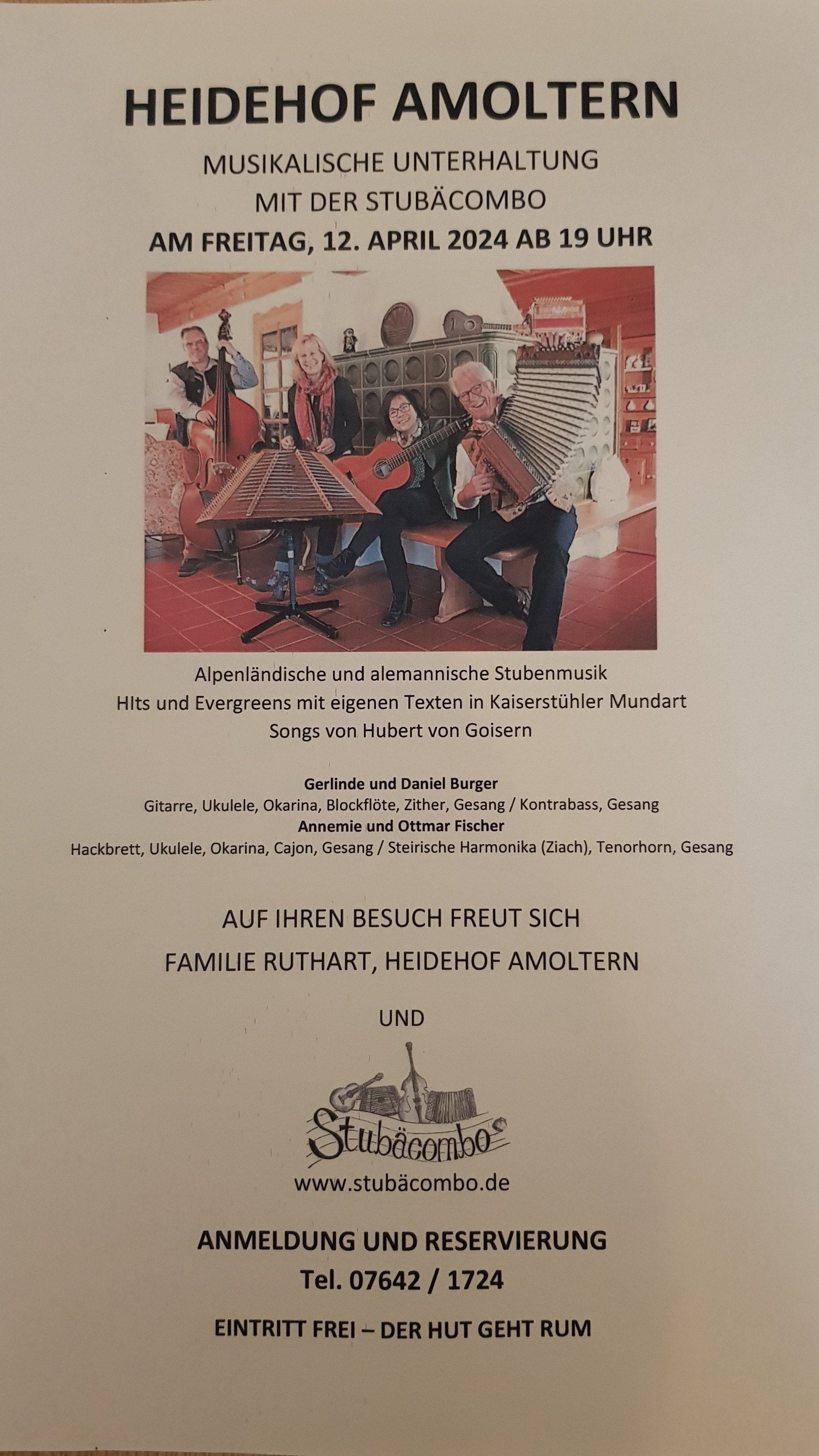 der Stubäcombo und dem Blockflötenquartett. Texte und Gedichte in kaiserstühler Mundart von und mit Otto Meyer.
