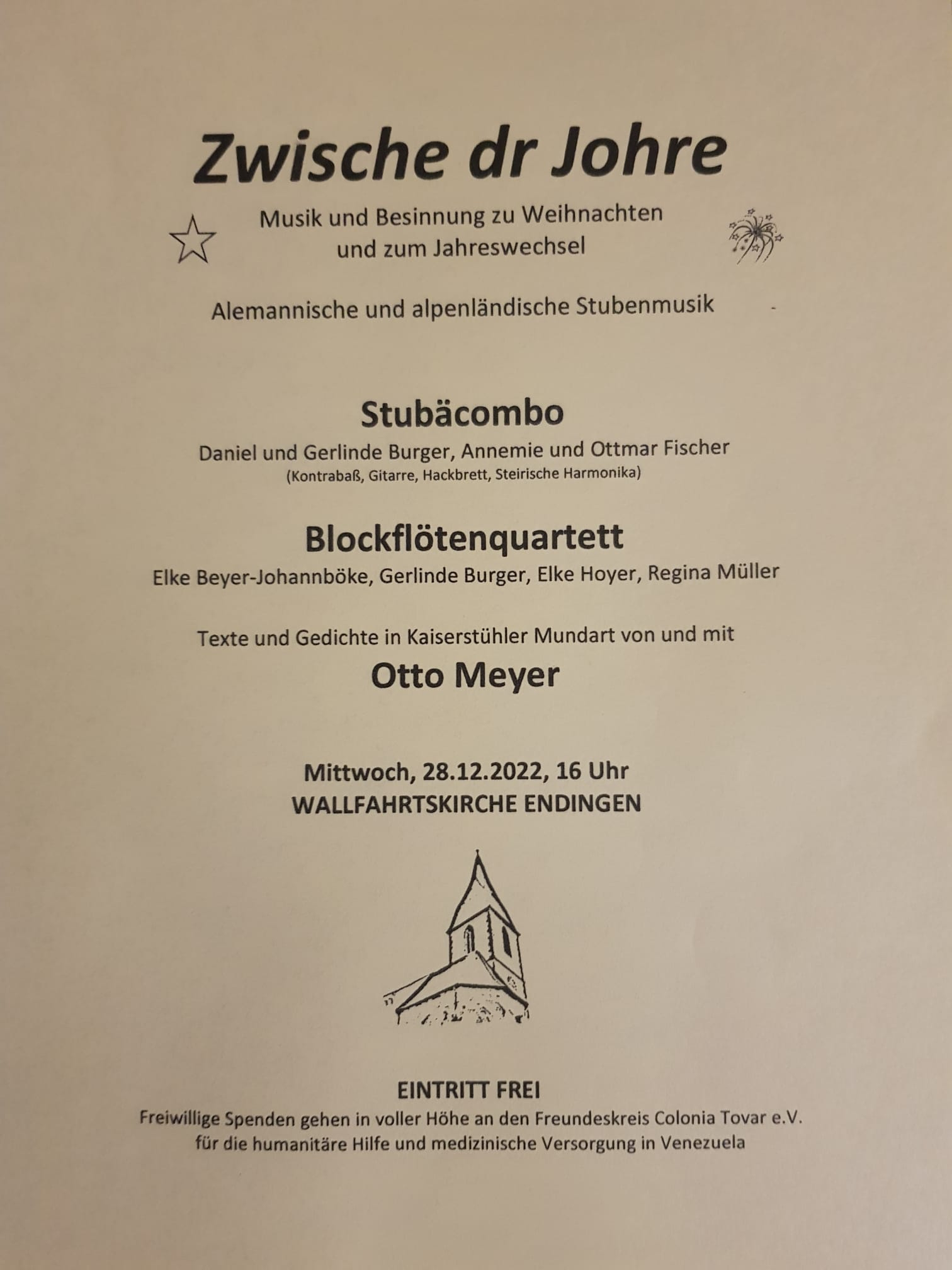 der Stubäcombo und dem Blockflötenquartett. Texte und Gedichte in kaiserstühler Mundart von und mit Otto Meyer.